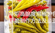 华炬新产品研究所技术咨询委员会科研人员现推荐一项一种高脆度泡椒护色保脆制作方法及步骤,该技术的目的是:提供一种快速、低盐的泡椒护色保脆制作方法。该技术方案的有益效果是:这种泡椒护色保脆制作方法,使用的是低盐纯乳酸菌恒温发酵,利用自然光和温度促成发酵,发酵过程通过氯化钙和海藻酸钠保持脆度,发酵溶液表面有CaOH和空气形成的微膜,防止色素氧化;白酒、花椒同时起到调味、保鲜、提色的作用,大豆多糖微可使泡椒在销售和仓存过程中过程进行稳定、缓慢的二次发酵;泡椒的加工时间缩短50%,脆度提高一倍,现将该一种高脆度泡椒护色保脆制作方法及步骤及技术方案及实施例介绍如下供研究交流参考:(211341 215553)