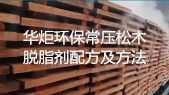 华炬科技新产品研究所技术咨询委员会科研人员现推荐一项一种环保常压松木脱脂剂配方及方法,该技术的目的旨在:提供一种适用于物理脱脂工艺使用的脱脂剂,即使这种脱脂在常压下进行,而且不影响木材的物理力学性能,该技术常压松木脱脂剂与目前已知同类脱脂剂相比,其优点是:一、不需要设置高压和真空脱脂设备;二、实现了较低温脱脂,在70℃~90℃的水温条件就能脱除松木中50~90%的松脂;三、采用的脱脂剂原材料无嗅无味,亦无毒性,而且材料成本大为降低;四、使用该脱脂剂不会损伤木材的纤维素、半纤维素及木质素,不影响木材的物理力学性能,现将该一种环保常压松木脱脂剂配方及方法及技术方案及实施例介绍如下供研究交流参考:(271211 121736)