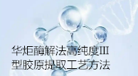 华炬科技新产品研究所技术咨询委员会科研人员现推荐一项一种酶解法高纯度III型胶原提取工艺方法,该技术的一种III型胶原的提取方法具有操作简便,工艺条件对仪器设备的依赖性较低,易于实现的优点,并且该方法制备出的III型胶原纯度高,分子量大,可作为一种理想的生物材料,用于组织工程、医疗器械、组织修复、药物控释和动物细胞培养等领域,现将该一种酶解法高纯度III型胶原提取工艺方法及技术方案及实施例介绍如下供研究交流参考:(311211 346249)