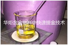 华炬新产品研究所技术咨询委员会科研人员现推荐一项含金物料中快速提金技术工艺方法,该技术一种各种含金物料中金的快速提取方法,更具体地涉及脱硫 和脱砷到一定程度的各种顽固金矿、低砷硫常规金矿、含金电路板等物料中金 的提取的方法。脱硫和脱砷到一定程度的各种顽固金矿以及电解含金铜阳极泥 或铅阳极泥、低砷硫常规金矿、含金电路板、含金手饰和扁幅工艺品等物料中 金的提取。由此把金由固体转移到滤液中,从而提取出来,同时酸性提取液可循环再用, 实现了酸性提取液零排放,降低了生产成本,经测定,金的提取率 η为97%,现将该含金物料中快速提金技术工艺方法实例介绍如下供研究交流参考:(611471 231645)