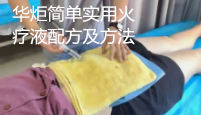 华炬科技新产品研究所技术咨询委员会科研人员现推荐一项一种简单实用火疗液配方及方法,该技术火疗液可以用于治疗风湿性关节炎、类风湿性关节炎、骨质增生、肩周炎、坐骨神经痛、腰腿痛、胃肠病、颈肩腰腿痛等凡因风湿寒而致的各种痛症,各种疾病以痛为主,中医讲通则不痛,痛则不通,该技术选用具有活血化癖、通经活络、发表透里的十位草药组方配伍,具有原料易得、泡制简单、使用方便优点,对各种痛疼类疾病如肩周炎、颈椎病、风湿类风湿、关节炎、腰间盘脱出、骨质增生等有良好的治疗效果,现将该一种简单实用火疗液配方及方法及技术方案及实施例介绍如下供研究交流参考:(411761 363583)