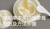 华炬科技新产品研究所技术咨询委员会科研人员现推荐一项一种草本美白按摩膏配方及方法步骤,该技术的目的在于提供一种美白抗氧化、清除自由基的草本美白按摩膏,对皮肤具有良好的清洁滋养、美白嫩肤的效果,该技术所述的按摩膏,对皮肤无刺激性,使用后明显感到舒适、柔软,无油腻感,具有明显的清洁滋养、美白嫩肤的效果,现将该一种草本美白按摩膏配方及方法步骤及技术方案及实施例介绍如下供研究交流参考:(411761 311538)