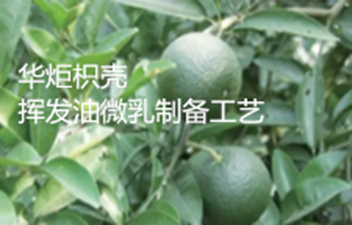 华炬科技新产品研究所技术咨询委员会科研人员现推荐一项枳壳挥发油微乳制备工艺方法,该技术产品枳壳挥发油微乳,均匀透明,粒径小(10~100nm),在常温及高低温条件下(4℃和45℃)存放3个月后能够保持均匀透明的稳定状态;枳壳挥发油微乳经检测分析其中有效成分高达65种,其中d-柠檬烯含量达到了24.63%;枳壳挥发油微乳可与水以任意比稀释,扩大了产品的使用范围;产品能耗小,无需均质等外界能力的输入,搅拌即可完成;产品成本低,制备方法简便,环保性和安全性高,具有显著的经济效益,可以应用于药品、化妆品、日化产品等新产品的开发,现将该枳壳挥发油微乳制备工艺方法及实施例介绍如下供研究交流参考:(441251 525261)