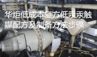 华炬科技新产品研究所技术咨询委员会科研人员现推荐一项一种低成本复方低汞汞触媒配方及制备方法步骤,该技术将触媒中氯化汞的含量由原来的11.5%左右降低到6%以下,使用后氯化汞的回收率3%左右,这样流失造成污染的氯化汞约由原7.5%左右降到了2.5%左右,这不仅使制造、合成的成本降低,而且显著降低了汞污染。原高汞触媒氯化汞的含量在11.5%左右,使用后氯化汞的回收率3%左右,这样,就说明在使用过程中消耗了约8.5%氯化汞,即每使用一吨氯化汞触媒,则消耗掉了85Kg的氯化汞,如果我国电石乙炔法生产PVC年产量按二千万吨计算,则每年需要使用2万吨氯化汞触媒,那么每年就有17000吨的氯化汞污染我国环境;而该技术复方低汞汞触媒,每使用一吨仅消耗掉25Kg氯化汞,照此推算,每年就只有500吨氯化汞污染我国环境,直接减排70%,环保社会效益巨大,现将该一种低成本复方低汞汞触媒配方及制备方法步骤及技术方案及实施例介绍如下供研究交流参考:(611511 421457)